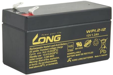 Méretek: 96 x 43 x 52 mm Paraméterek: Csatlakozók: F1 Feszültség: 12V Kapacitás: 1,2 Ah Méretek (HxSzxM): 96 x 43 x 52 mm Mérettűrések: 97(+1-1) x 43(+1-1) x 53(+1-1) mm Súly: 0,55 kg Elektrolit: AGM Akkumulátor típusa: Standard Élettartam: 3-5 év (az Eurobat szabvány szerint vagy "készenléti" üzemmódban) A VRLA - szelepvezérelt ólom-savas akkumulátor egy karbantartásmentes akkumulátortípus, amely bármilyen helyzetben üzemeltethető, mivel az elektrolit nem folyékony halmazállapotú. Az akkumulátor főbb jellemzői a megbízhatóság, a hosszú élettartam, az ütésállóság és a magas feldolgozási minőség. AGM - Nem szőtt üvegszálas szövetbe (abszorbeált üvegszálas paplan) áztatott elektrolittal rendelkező akkumulátor Standard – A leggyakrabban használt akkumulátor szünetmentes tápegységekhez „készenléti üzemmódban, vagy hasonló alkalmazásokhoz, ahol a műveletek nem igényelnek különleges követelményeket. A leggyakoribb alkalmazások és felhasználási területek: - UPS tartalék tápegységek - Elektronikus biztonsági rendszerek EZS - Elektromos tűzjelző rendszer EPS - Orvosi berendezések - Távközlési rendszerek és adók - Kameracsapdák - Gyermekeknek való elektromos járművek és játékok - Visszhangmérők és szonárok - Lépcsőülések és liftek - Tartalék források szivattyúkhoz /> Az akkumulátor és megfelelőinek megnevezése: WP1,2-12, CJ12-1,3