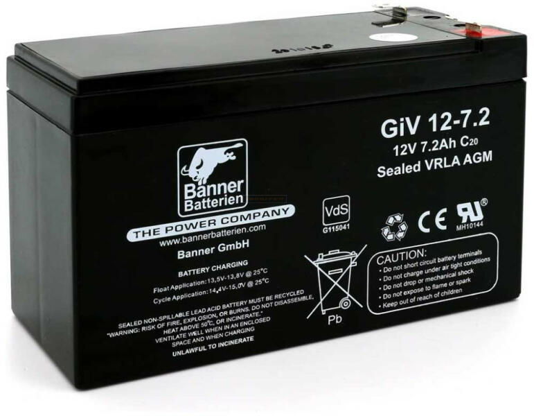 A Banner Stand by Bull Block VLRA AGM zselés akkumulátor egy kiváló minőségű energiaforrás, melyet kifejezetten a Banner Stand termékcsalád számára terveztek. Ez a 12V-os 7,2 kapacitású akkumulátor tökéletes választás riasztókhoz, etető hajókhoz.