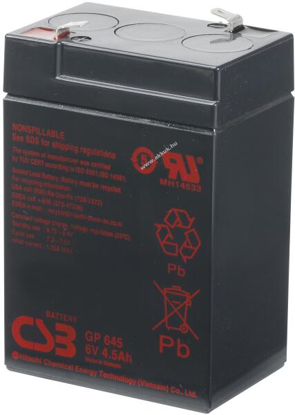 CSB-Battery Ólom akku 6V 4, 5Ah ( CSB / Hitachi) típus GP645 F1