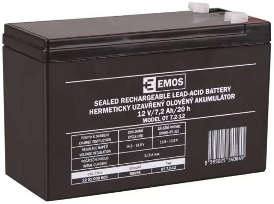 Az Emos B9654 egy zárt ólomsavas (VRLA) AGM akkumulátor, amelyet elsősorban szünetmentes tápegységekhez (UPS), biztonsági rendszerekhez, vészvilágításhoz és egyéb kis fogyasztású eszközökhöz használnak. Főbb tulajdonságok: