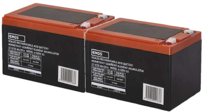 Alapvetően csavaros kivitel de jár hozzá sarus átalakító. 12V 15Ah EMOS B9656V típusjelölésű elektromos kerékpárba ciklikus zselés akkumulátor csúszósaru csatlakozási lehetőséggel. Méret: (H)151mm x (Sz)100,2mm x (M)100,4mm saruval 104,6mm. Súly: 4,51kg/db. Várható élettartam 5 év (3 órás kisütésnél, 25°C-on) Felhasználási terület: elektromos meghajtású autó, elektromos kerékpár, e-bike, golfkocsi, kerekesszék, rokkantkocsi... stb.