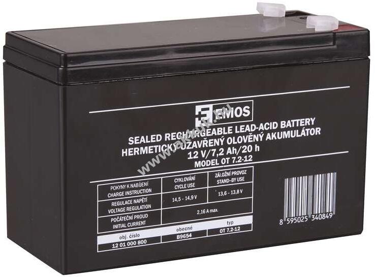 EMOS Helyettesítő ólom akku Diamec típus: DM12-7.2 12V 7, 2Ah EMOS