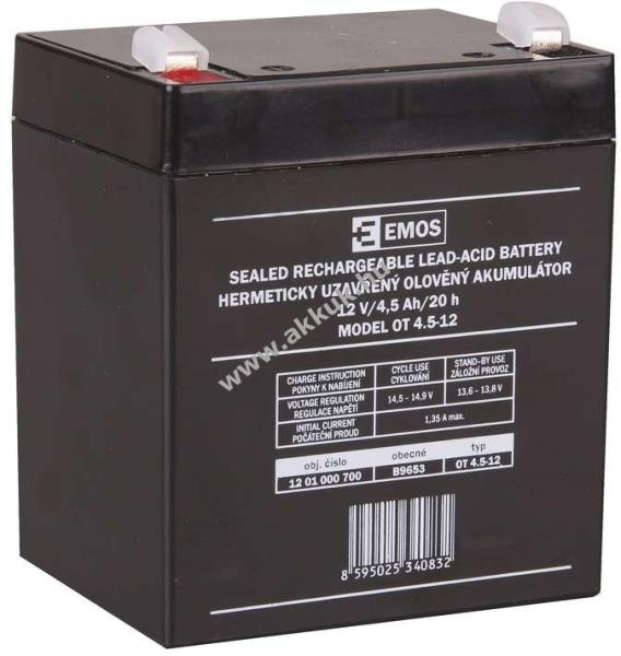 Feszültség: 12V - Teljesítmény: 4,5Ah - Típus: SLA - Méret: 90mm x 70mm x 101mm