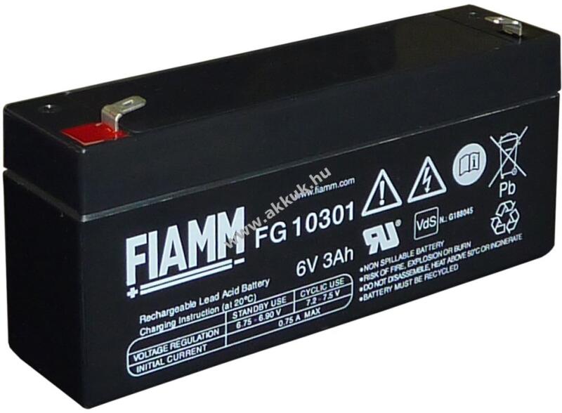 FIAMM Ólom akku 6V 3Ah FIAMM típus FG10301 VDS-minősítéssel (csatlakozó: F1)