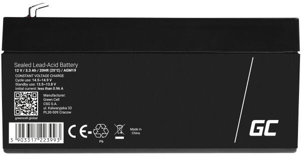 Green Cell AGM19 Zárt savas ólom (VRLA) 12 V 3, 3 Ah (AGM19)