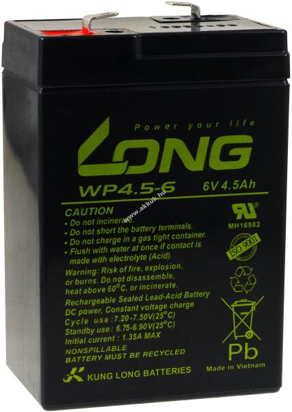 Feszültség: 6V - Teljesítmény: 4,5Ah/27Wh - Típus: SLA - Méret: 70,0mm x 47,0mm x 101,0mm