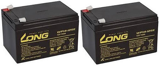 24V 14Ah (2db 12V 14Ah) Long WP12-14SE típusjelölésű elektromos kerékpárba ciklikus zselés akkumulátor csúszósaru csatlakozási lehetőséggel. Méret: (H)151mm x (Sz)100,2mm x (M)100,4mm saruval 104,6mm. Súly: 4,51kg/db. Várható élettartam 5 év (3 órás kisütésnél, 25°C-on) Felhasználási terület: elektromos meghajtású autó, elektromos kerékpár, e-bike, golfkocsi, kerekesszék, rokkantkocsi... stb.