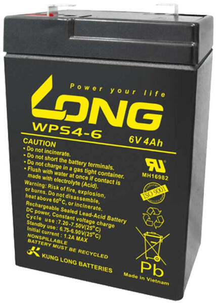 Long WPS4-6 zselés akkumulátor 6V 4Ah (WPS4-6) - akkuboltencs