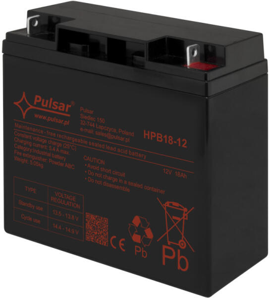 Feszültség: 12V, Tárolókapacitás: 18 Ah