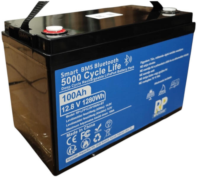 Realpower RP 12V 100Ah lítium vasfoszfát (LiFePo4) akkumulátor / bluetooth, kemping, hajó, hobby (RP-LFP12.8V100AH-BT)