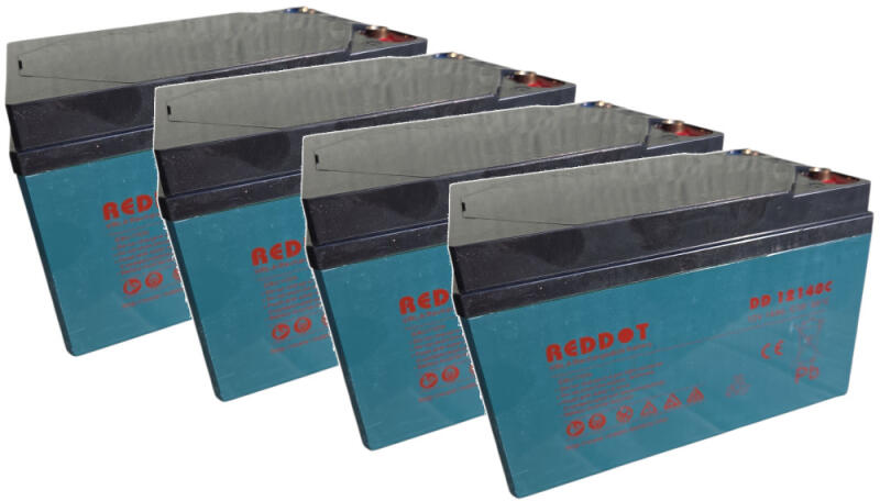 48V 14Ah (4db 12V 14Ah) RedDot DD12140C típusjelölésű elektromos kerékpárba ciklikus zselés akkumulátor csavaros csatlakozási lehetőséggel. Méret: (H)151mm x (Sz)100,2mm x (M)100,4mm csavarral 104,6mm. Súly: 3,9kg/db. Várható élettartam 5 év (3 órás kisütésnél, 25°C-on) Felhasználási terület: elektromos meghajtású autó, elektromos kerékpár, e-bike, golfkocsi, kerekesszék, rokkantkocsi... stb.
