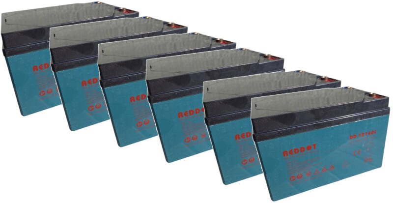 72V 14Ah (6db 12V 14Ah) RedDot DD12140C típusjelölésű elektromos kerékpárba ciklikus zselés akkumulátor csavaros csatlakozási lehetőséggel. Méret: (H)151mm x (Sz)100,2mm x (M)100,4mm csavarral 104,6mm. Súly: 3,9kg/db. Várható élettartam 5 év (3 órás kisütésnél, 25°C-on) Felhasználási terület: elektromos meghajtású autó, elektromos kerékpár, e-bike, golfkocsi, kerekesszék, rokkantkocsi... stb.