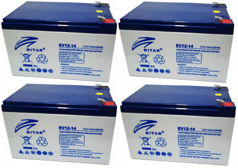 48V 14Ah Ritar EV12-14 (4db 12V 14Ah) 6-DZM-12/6-DZF-12 vagy 6-DZM-14 típusjelölésű elektromos kerékpárba ciklikus zselés akkumulátor csúszósaru csatlakozási lehetőséggel. Méret: (H)151mm x (Sz)100,2mm x (M)100,4mm saruval 104,6mm. Súly: 4,51kg/db. Várható élettartam 5 év (3 órás kisütésnél, 25°C-on) Felhasználási terület: elektromos meghajtású autó, elektromos kerékpár, e-bike, golfkocsi, kerekesszék, rokkantkocsi... stb.