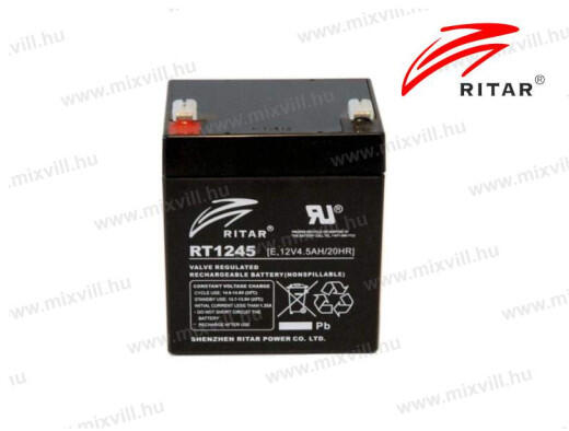 RITAR RT1245E-F1 12V 4,5Ah zárt ólomakkumulátor SLA riasztó hangjelzőbe Felhasználási terület: - riasztók, tűzjelzők, stb. szünetmentes áramforrása.