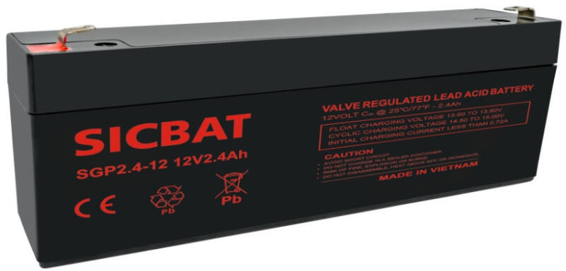 A Sicbat SGP2.4-12 egy 12V-os, 2,3Ah kapacitású, gondozásmentes AGM akkumulátor. Ideális választás riasztórendszerekhez, szünetmentes tápegységekhez és egyéb biztonsági eszközökhöz, ahol megbízható és karbantartásmentes áramforrás szükséges. Főbb jellemzők: