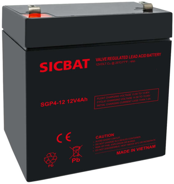 A SICBAT SGP4-12 12V 4Ah egy ipari célokra tervezett, zárt (zselés) ólomakkumulátor, amely megbízható teljesítményt és karbantartásmentes működést kínál. Alább bemutatom a legfontosabb adatait és jellemzőit. Műszaki adatok :