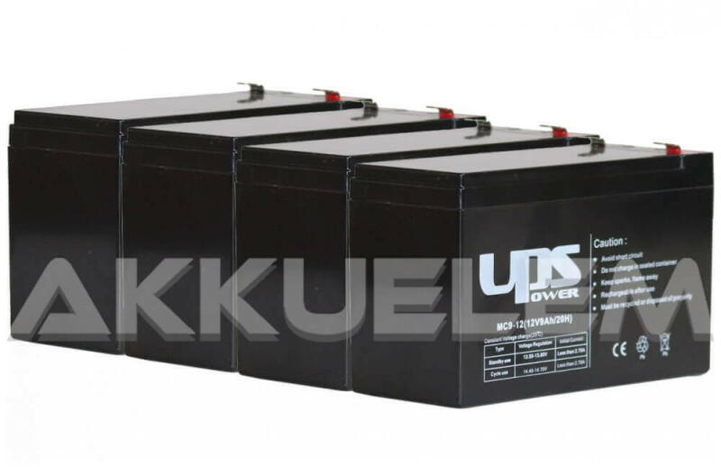 Az akkucsomag 4 darab UPS Power 12V 9Ah (MC9-12) zselés akkumulátorból áll. A csomag csak az akkukat tartalmazza, a vezetéket nem!
