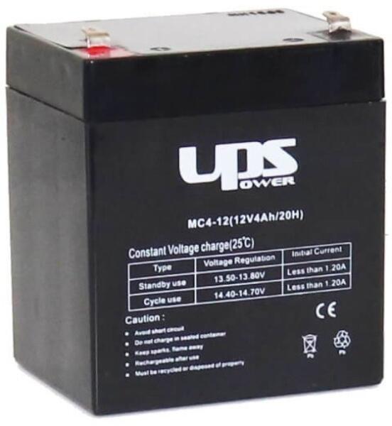Az UPS MC4-12 egy 12V-os , 4Ah kapacitású, zárt ólomsavas (AGM) akkumulátor, amelyet elsősorban szünetmentes tápegységekben, riasztórendszerekben és egyéb biztonsági alkalmazásokban használnak. ? Főbb jellemzői: