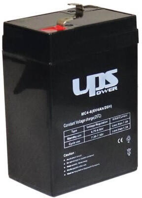 UPS Power MC4-6 6V 4Ah teljesen zártrendszerű, gondozásmentes VRLA ólomsavas zselés akkumulátor. Felhasználási terület: riasztó rendszerek, szünetmentes tápok, vészvilágító - és egyéb világító berendezések.