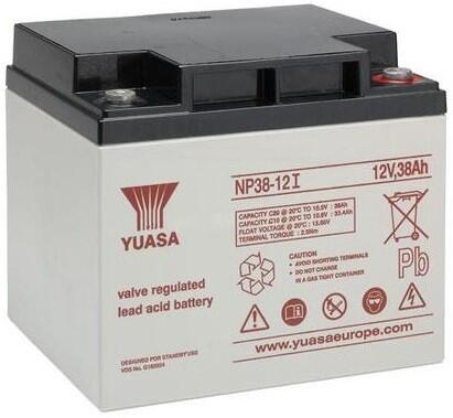 A YUASA NP38-12 egy zselés ólomakkumulátor , amelyet főként szünetmentes tápegységekhez (UPS), biztonsági rendszerekhez, orvosi eszközökhöz és más ipari alkalmazásokhoz használnak. Műszaki adatok: