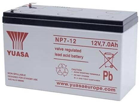 12 V 7Ah YUASA NP7-12 zárt gondozásmentes AGM technológiás, szeleppel vezérelt VRLA zselés ólomsavas akkumulátor. VdS minősítés (VdS No: G 189099) mely egy modern, csúcstechnológiájú energiatároló akkumulátor általános célú, ismételten újratölthető használatra. A szigetelt tömítéssel vízszintes, függőleges és oldalsó irányban is elhelyezhető, biztonságát és funkcióit ez nem befolyásolja. Várható élettartama 3-5 év (Standby - Készenléti üzemmódban 5 év, 20 ⁰C), mely nagyban függ a környezeti hőmérséklettől, felhasználási területtől, terheléstől.