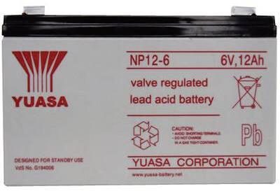 Ólomakku NP 12 - 6SzivárgásmentesKitűnő nagyáramú jellemzőkKarbantartásmentesA Yuasa cég Európában piacvezető a karbantartást nem igényelő, stacioner ipari akkumulátorok gyártásában. Az NP sorozat termékeit, amelyeknek a termelése az utóbbi évtizedben meghaladta a 40 millió darabot, műszakilag folyamatosan fejlesztik. Így a vevők abszolút kiforrott terméket kapnak, amely az előírások betartása mellett, akár 5 évig is optimálisan üzemeltethető. Jellemzők: Kiváló nagyáramú tulajdonságok · Nagyon jó töltési hatékonyság · Nem veszélyes termék az IATA alapján · Hosszú élettartam csekély önkisüléssel · Alkalmazás: USV, telekommunikáció, vészvilágítás rendszerek, tűzriasztó- és biztonsági rendszerek, vezérlő- és szabályozó rendszerek, elektronikus tesztkészülékekMűszaki adatok: Akku/elem típus: Ólomakku · Csatlakozó (akku): 6,35 mm-es laposérintkezős dugó · Elem jellemzők: Karbantartásmentes, VDS tanusítvány · Elem-/akkutechnológia: Ólom-vlies (AGM) · Feszültség: 6 V · Gyártói szám: NP12-6 · Kapacitás (mAh, Ah): 12 Ah · Méret, magasság: 98 mm · Méret, mélység: 50 mm · Méret, szélesség: 151 mm · Súly: 2050 g · VDS engedély: Igen · VDS szám: G194006 · Újratölthető: IgenFigyelem: A VdS számmal rendelkező ólomakkumulátorok alkalmasak a biztosítótársaságok által elfogadott riasztórendszerekbe.