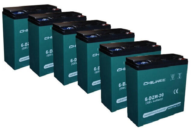 72V 20Ah (6db 12V 20Ah) CHILWEE 6-DZM-20 vagy 6-DZF-20 elektromos kerékpárba ciklikus zselés akkumulátor csavaros csatlakozással. Méret:(H)181mm x (Sz)76mm x (M)167mm Súly:6.2kg Garancia 12 hónap + 12 hónap jótállási idő. Várható élettartam 5 év (20 órás kisütésnél, 25°C-on). Felhasználási terület: elektromos kerékpár, e-bike, elektromos meghajtású autó, golfkocsi, kerekesszék, rokkantkocsi, tricikli... stb.